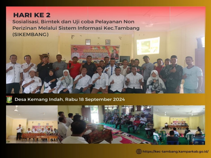 Kegiatan ini dihadiri oleh Kepala desa yang di wakili oleh Sekdes Kemang Indah beserta Perkangkat Desa dan LKD Desa terkait dengan pelayanan publik. Sistem Informasi Kec. Tambang (SIKEMBANG) sendiri diperkenalkan sebagai platform digital untuk mempermudah pelayanan non perizinan di wilayah Kecamatan Tambang, dengan fokus untuk meningkatkan efisiensi dan transparansi pelayanan publik.