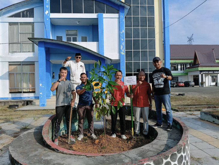 Penanaman pohon secara gotong royong dapat membantu menghijaukan lingkungan Kantor Camat Tambang.